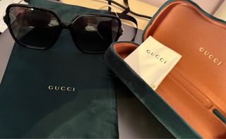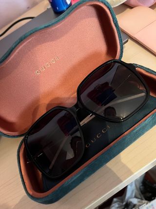 Gafas de sol gucci nuevas a estrenar, se compraron para graduar pero no se puede. Incluye Funda de gafas, alfombra para limpiarlas y bolsa para guardar la funda. Se entrega con ticket de compra (fecha 4 de junio de 2023) MEDIDAS: Ancho: 13.4cm Patilla: 13.3cm Puente nariz: 0.8cm
