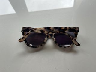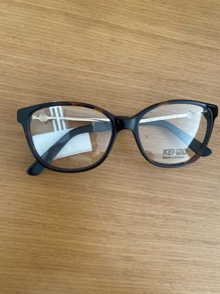 Son buenas de óptica. Están sin graduar. La montura es de pasta, y tiene estampado animal print. Se venden con funda de Carolina Herrera.