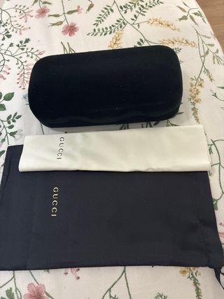 Funda original para gafas de la marca Gucci. Incluye caja rígida, funda de tela y paño de limpieza. - Caja rígida con interior aterciopelado. - Funda de tela para protección adicional. - Paño de microfibra para limpieza. Terciopelo