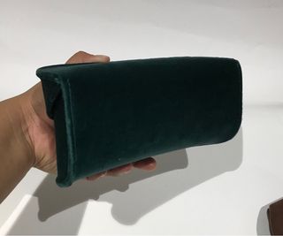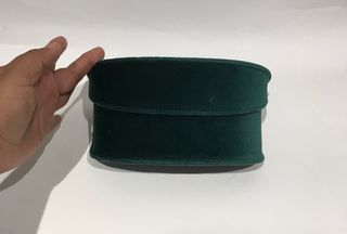 Estuche de terciopelo verde para gafas de sol Gucci. Incluye bolsa de tela azul con el logo de la marca. - Material del estuche: terciopelo. - Color del estuche: verde. - Color de la bolsa: azul. Se vende por ruptura de pareja 🤣 Modelo GG0921S 001