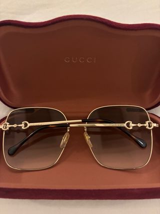 Gafas de sol Gucci, elegantes y en perfecto estado. Incluyen funda de tela Gucci. - Montura cuadrada. - Lentes oscuras. - Incluye estuche Gucci.