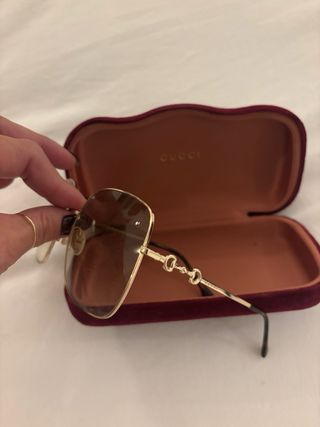 Gafas Gucci en muy buen estado, tiene un poco rozada una pantilla por dentro. Material: Acetato Forma de las gafas: Cuadrada Categoría de filtro: Medio (categoría 2) Protección UV: Sí Ancho: 15 cm (talla 52) Largo de la patilla: 15 cm (talla 52) Ancho del arco: 1.3 cm (talla 52)