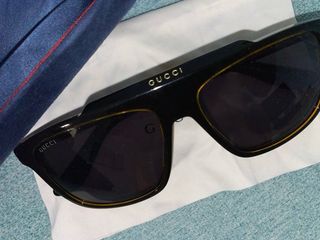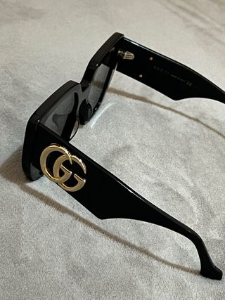 Vendo gafas de sol Gucci con lentes negras rectangulares, diseño de los años 90. Están en perfecta condición, no me las he puedo para salir nunca. Vendo por que no se les pueden poner lentes graduadas para mi vista, entonces no veo nada en ellas, y no puedo llevarlas. Son auténticas compradas en tienda física (puedo pedirles tíquet de venta si lo necesitáis para la confirmación, también lo podéis comprobar con el núm. de serie que aparece en las fotos). - Incluye estuche y paño de limpieza.