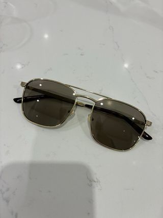 Gafas de sol Gucci GG1881S 002. Montura de metal brillante dorada, Patillas de metal dorado brillante con puntas con estampado carey y logotipo Gucci grabado, Lentes marrón liso, Protección total contra rayos UVA y UVB. Están en muy buen estado, se han utilizado en pocas ocasiones.