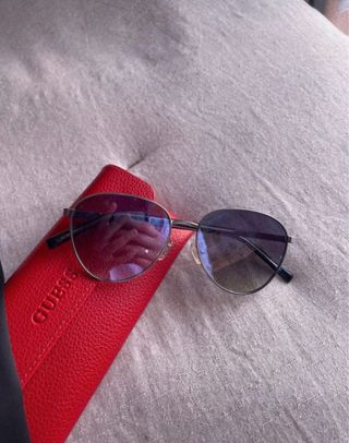 Gafas de sol Guess, elegantes y en perfecto estado. - Montura tipo ojo de gato. - Incluye estuche rojo.