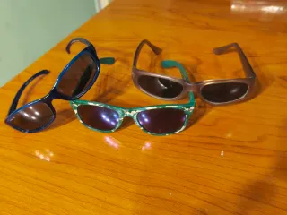 Conjunto de gafas de sol para niños. - Montura azul. - Montura verde con camuflaje. 5€ unidad, pack de 3 por 10€