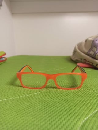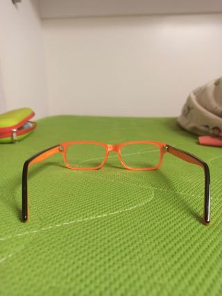 Montura de gafas infantiles de la marca Piccolo. Los cristales están puestos por si concordaran con quien los compre. Casi no se han usado. - Color naranja y negro. - Diseño moderno. - Funda incluida