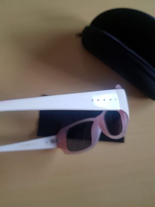 Gafas de sol infantiles de la marca Chico. Son de color rosa y vienen con su estuche protector. Ideales para proteger los ojos del sol. - Están en buen estado. - Perfectas para niños y niñas de 2 años en adelante