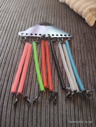 Set de 7 cuerdas elásticas para gafas, ideales para niños. Cada cuerda tiene un diseño de espiral y un enganche seguro. - Cuerdas de colores variados. - Diseño en espiral. - Enganches para las patillas de las gafas.