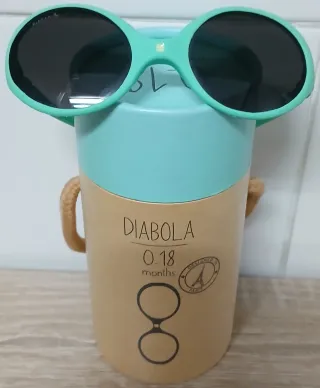 Gafas de sol infantiles con goma para sujetar a la cabeza, apenas utilizadas, están en perfecto estado. - Montura en color verde. - Lentes negras. - Diseño ligero y cómodo. Las puedo acercar a Madrid o a pueblos del sur de la Comunidad.