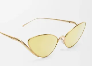 Gafas de sol con un diseño moderno y llamativo. - Montura con forma Cateye. - Acabado biselado. - Lentes oscuras. - Precio en tienda de 340€ - Descatalogadas actualmente