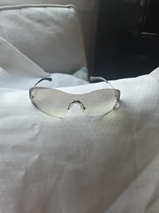 Gafas de sol con montura plateada. - Diseño moderno y elegante. - Lentes transparentes.