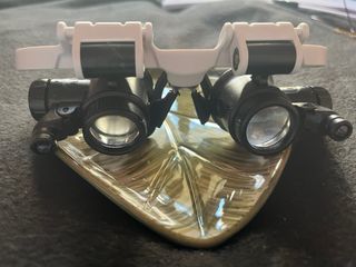 Gafas de aumento con luz incorporada, diseñadas para tareas de precisión. - Lentes intercambiables para diferentes aumentos. - Luces LED integradas para mejor visibilidad. - Montura ajustable para mayor comodidad.
