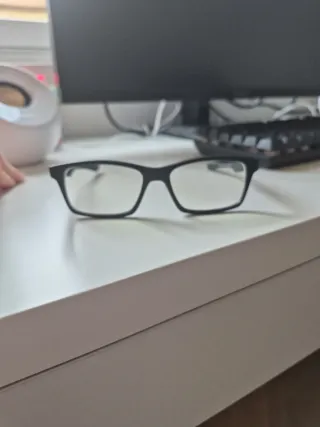 Gafas de la marca Oakley con montura negra y detalles verdes. - Montura de acetato. - Diseño moderno y ligero. - Ideales para el uso diario. -Talla de niño