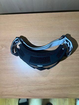 Gafas de motocross con un diseño moderno y lentes espejadas. - Montura negra. - Lentes plateadas. - Correa ajustable.
