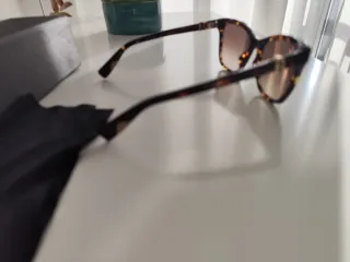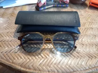 Gafas de sol Ray-Ban con montura de tortuga y lentes degradadas. - Montura de acetato con estampado de tortuga. - Lentes con efecto degradado de marrón a transparente. - Logo de Ray-Ban en la lente izquierda.SON ORIGINALES. Menos la funda tengo esa zq perdida la mía.estan impolutas.