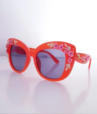GAFAS PARA MUJER. GAFAS DE SOL ESTILO OJO DE GATO, MONTURA DE PLÁSTICO DE GRAN CALIDAD PARA MAYOR DURABILIDAD, COLOR NARANJA. LOS ELEGANTES DETALLES METÁLICOS AÑADEN UN TOQUE DE SOFISTICACIÓN BORDE ÚNICO DE FLORES DE PRIMAVERA EN LAS SIENES PARA UN TOQUE CAPRICHOSO. LENTES UV400 PARA UNA PROTECCIÓN COMPLETA CONTRA LOS DAÑINOS RAYOS UV. NUEVO A ESTRENAR.