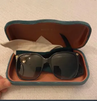 Elegantes gafas de sol Gucci para mujer modelo : GG0022s -Funda Original Gucci - Montura en color negro. - Detalles en las patillas en color dorado.