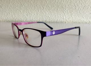 Montura de gafas de vista para mujer, de metal. Color morado/rosa. Incluye funda de tela.
