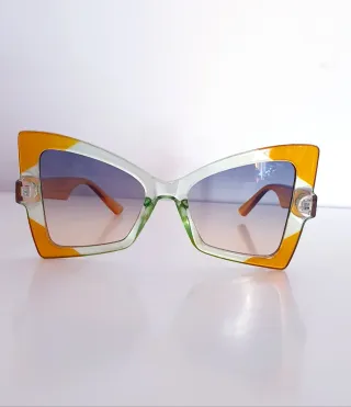 GAFAS PARA MUJER. GAFAS DE SOL ESTILO DE MARIPOSA, LENTES DEGRADADOS EN AMARILLO Y VERDE CON DETALLES CLAROS. IDEAL PARA USO DIARIO. NUEVO A ESTRENAR.