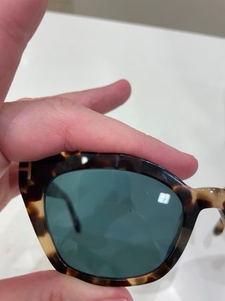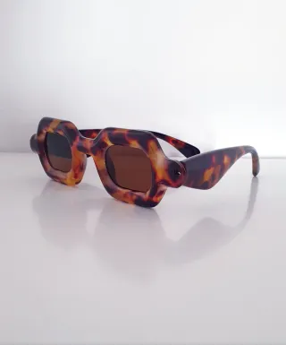Gafas de sol con un diseño elegante y moderno. - Montura de acetato con estampado de carey. - Lentes con tinte marrón. - Patillas finas con detalle metálico. - Se entrega sin estuche. Precio original: 135€ Comparto por privado la web oficial de la marca donde puedes revisar las características de las gafas (Wallapop no me dejar insertar el link)