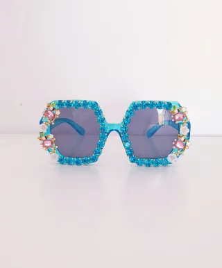 GAFAS PARA MUJER. GAFAS DE SOL CON MARCO DE POLÍCARBONATO COLOR AZUL INCRUSTADO CON DIAMANTES DE IMITACION BRILLANTES. GLAMOROSA,ELEGANTE,BRILLANTE TIPO MARQUESINA. PROTECCIÓN UV 400. NUEVO A ESTRENAR.