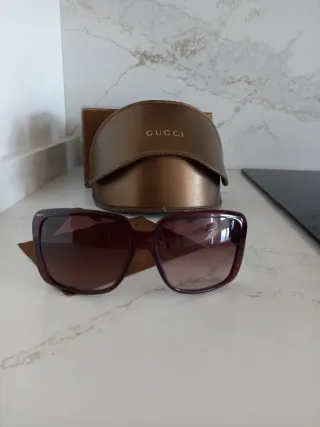 Gafas de sol Gucci para mujer en color marrón. Incluyen su estuche original, funda protectora y documentación. - Estuche rígido negro. - Funda de tela negra con logo. - Paño de limpieza. - Folleto de información.