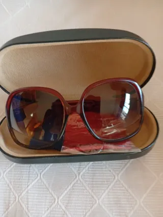 Gafas de vista elegante para mujer. - Montura de color granate. - Incluye funda protectora. Tuve una temporada con una alta dermatitis. Me compraba gafas para tapar los brotes. Estas no he llegado a usarlas nunca. Me costaron 120€. Están nuevas. Sin ningún rasguño. Los cristales son graduados, con 0 de graduación. Me gastaba en cristales buenos para que no tuviese repercusión en la vista. Las vendo porque tengo más pares y estas no las utilizo.