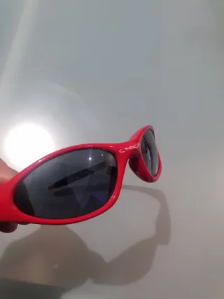 Gafas de sol Oakley estrechas, ideales para niños. El color rojo vibrante las hace destacar. - Diseño deportivo y moderno. - Montura resistente. *Desperfectos en los bordes laterales y las lentes, aunque ningún rayón importante. (Últimas fotos)