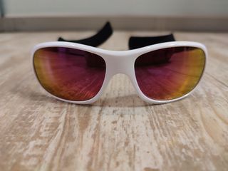 Gafas de sol diseñadas para actividades al aire libre, ideales para niños de 6 a 10 años. - Montura blanca. - Lentes multicolor con reflejos. Los cristales anti-UV bloquean el 100% de los rayos nocivos para proteger los ojos frágiles de los niños. Su forma envolvente protege los ojos incluso por los laterales.