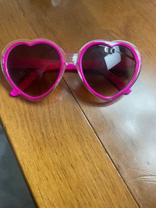 Gafas de sol con forma de corazón, ideales para niñas. - Montura transparente con borde rosa. - Lentes de color marrón.