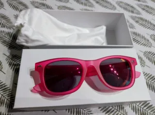 Gafas de sol Ray-Ban junior para niña rosa Los terminales negros se pueden cambiar en óptica sin problema. La pantalla tiene una rayada,pero al ser efecto espejo casi no se nota Va sin funda