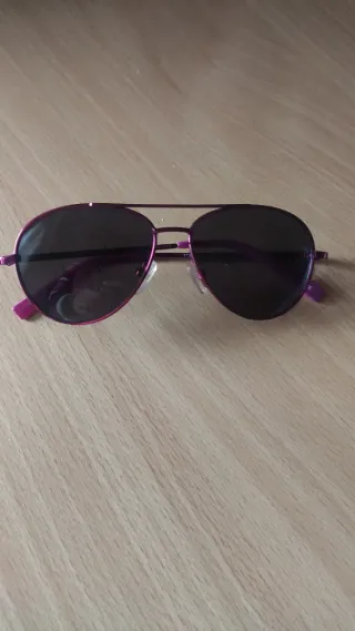 Gafas de sol estilo aviador para niña. Un accesorio divertido y moderno. - Montura metálica en tono morado. - Lentes oscuras.