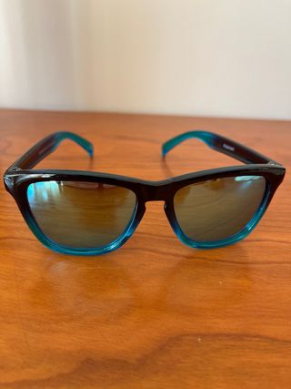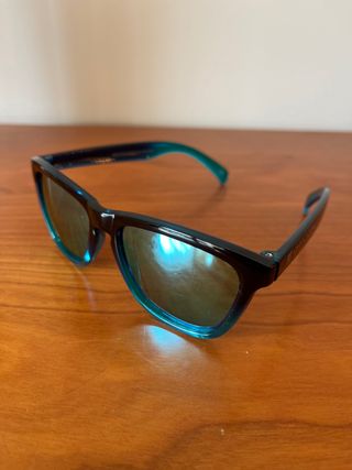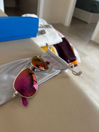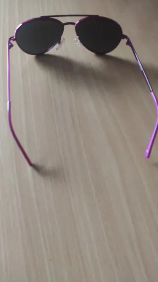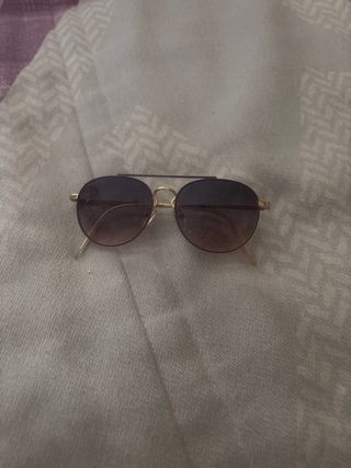 Gafas de sol estilo aviador con lentes espejadas y negras. 20€ cada una - Montura dorada. - Lentes con acabado espejo verde. - Lentes oscuras. Hay una más pequeña de niña