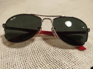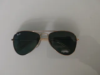 Gafas de sol Ray-Ban estilo aviador, con montura dorada y lentes verdes. Se han usado un par de veces y se entregan con su funda original. - Montura metálica dorada. - Lentes de cristal color verde. - Incluye funda protectora.