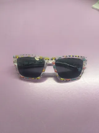 Gafas de sol para niños con un diseño divertido y llamativo (numeritos). Buenas calidad de lentes (adquiridas en farmacia). En muy buen estado (poco uso). Hasta 6/8 años aproximadamente.