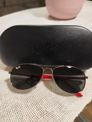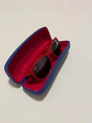 Gafas de sol Ray-Ban para niñ@s. - Montura de color rojo. - Lentes de color negro. -incluida funda protectora.