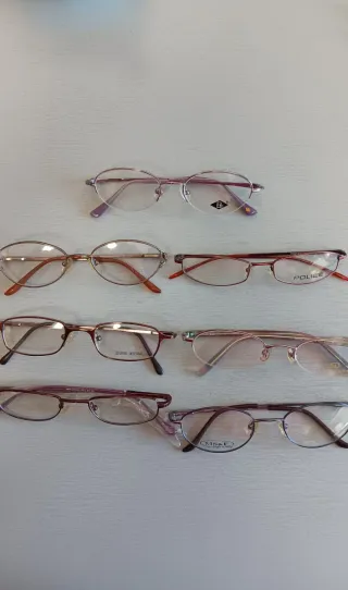 Variedad de monturas para gafas, perfectas para renovar tu estilo. Diseños elegantes y modernos para hombre,mujer y niños/as - Monturas metálicas. - Combinación de colores oro y plata. - 150 monturas - 2 euros por montura