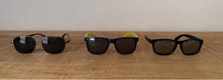 Conjunto de tres pares de gafas de sol para niños. Amarillas Quechua, el resto genéricas Rayones en las fotos del uso por niños