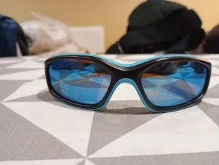 Gafas de sol con montura azul y lentes espejadas. Perfecto estado, para niño.