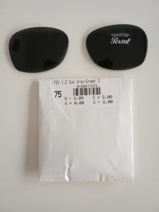 Dos cristales de repuesto para gafas de sol Persol. - Modelo FSV 1.5. - Color Gris-Verde.