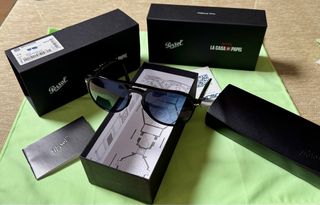 Gafas de sol Persol edición especial La Casa de Papel. Preciosas gafas de la prestigiosa casa Persol , en acabado negro con cristal polarizado en azul . - Lentes polarizadas con degradado azul. - Montura negra. - Incluye caja original y funda.