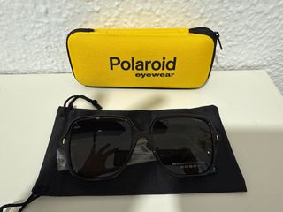 Gafas de sol Polaroid con un diseño moderno y elegante. - Montura negra. - Lentes polarizadas. - Incluye funda protectora amarilla.