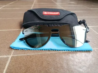 Gafas de sol con lentes polarizadas y montura negra. - Lentes con acabado espejo. - Incluye funda protectora. Las vendo por falta de uso.