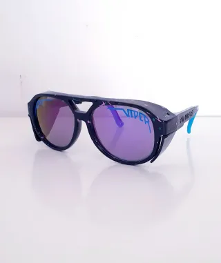 GAFAS UNISEX "PIT VIPER". GAFAS DE SOL POLARIZADAS, MONTURA NEGRA CON LENTES COLOR MORADO. SU DISEÑO FRESCO, ELEGANTE Y MODERNO ES IDEAL PARA DEPORTES, CONDUCCIÓN, CICLISMO,PLAYA, VIAJES, VACACIONES Y OTRAS OCASIONES DIFERENTES. CARACTERÍSTICAS: -PROTECCIÓN UV 400. -MARCO DE POLÍCARBONATO. -PATILLA AJUSTABLE. -ANCHURA MEDIA. DIMENSIONES DE LAS GAFAS: -ANCHO DE LA MONTURA: 14.9 CM. -ALTURA DE LA MONTURA: 5.8 CM. -APERTURA DE LA NARIZ: 2.0 CM. NUEVO A ESTRENAR.