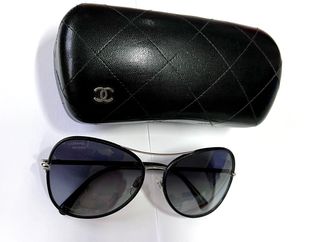 Elegantes gafas de sol Chanel con un diseño moderno y sofisticado. - Montura en tono plateado. - Lentes degradadas en negro. - Incluye estuche protector acolchado. - Polarizadas. Hago envíos a través de Wallapop (Inpost). No envío a través de Correos.