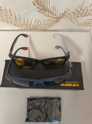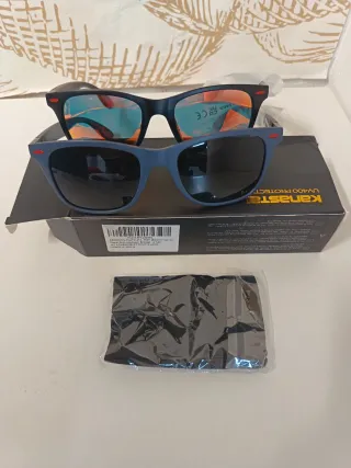 kafas de Sol Deportivas Polarizadas Marca Kapvoe con cristales Azules y Montura Negra para Hombre y Mujer. - Reducen el deslumbramiento y los reflejos ante los rayos del sol y en superficies húmedas. - Protección UV400 - Perfectas para deportes al aire libre como ciclismo de montaña, Traking, Escalada, Pesca etc.. y para Conducción de Moto y Coche. - También válidas simplemente para vestir. - Ligeras y Duraderas, resistiendo el movimiento en los paseos manteniendo las gafas en su sitio. - Sus lentes protegen tus ojos ante los rayos UVA manteniendolos a salvo. - Lente Polarizada Tac. TOTALMENTE NUEVAS