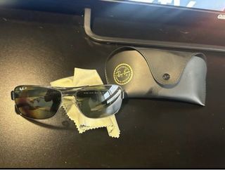 Gafas de sol Ray-Ban con montura y lentes en tonos negros y grises. Incluyen su funda protectora. - Montura metálica. - Lentes polarizadas. - Incluye funda original.