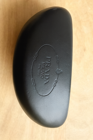Estuche rígido PRADA Milano en color negro, interior aterciopelado con logo original. Perfecto para proteger gafas de sol o graduadas. Estado: usado, con marca visible en la parte superior (ver foto), pero funcional y elegante. Ideal para quien busca un accesorio de lujo a buen precio. Medidas aproximadas: 16 cm (largo) x 7 cm (ancho) x 6 cm (alto). #Prada #estuche #gafas #lujo #accesorios #segundaMano #Wallapop #Barcelona