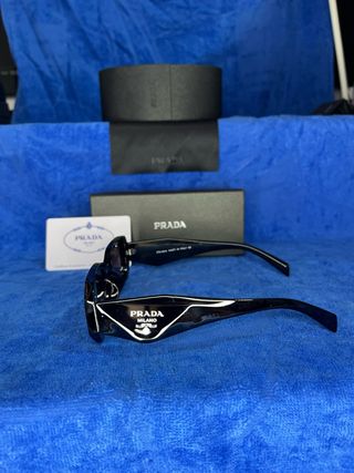 Elegantes gafas de sol Prada con un diseño moderno. - Montura de color negro. - Logo de Prada Milano en las patillas.